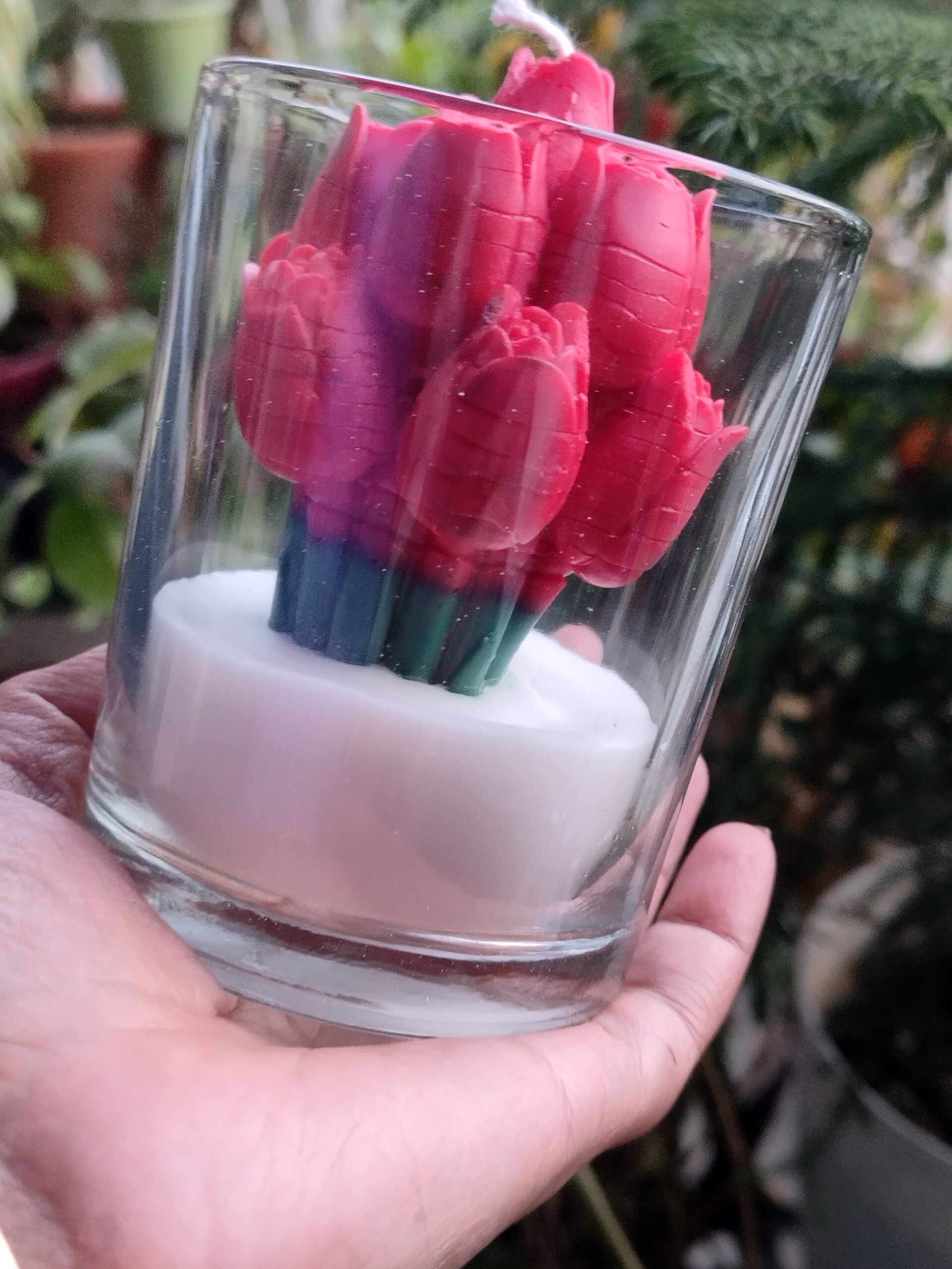 Add a touch of floral elegance to your space with this handcrafted tulip candle in a clear glass jar. Designed to look like fresh blooms, it creates a soothing ambiance and doubles as décor. Perfect for gifting, celebrations, or cozy evenings filled with warmth and charm.