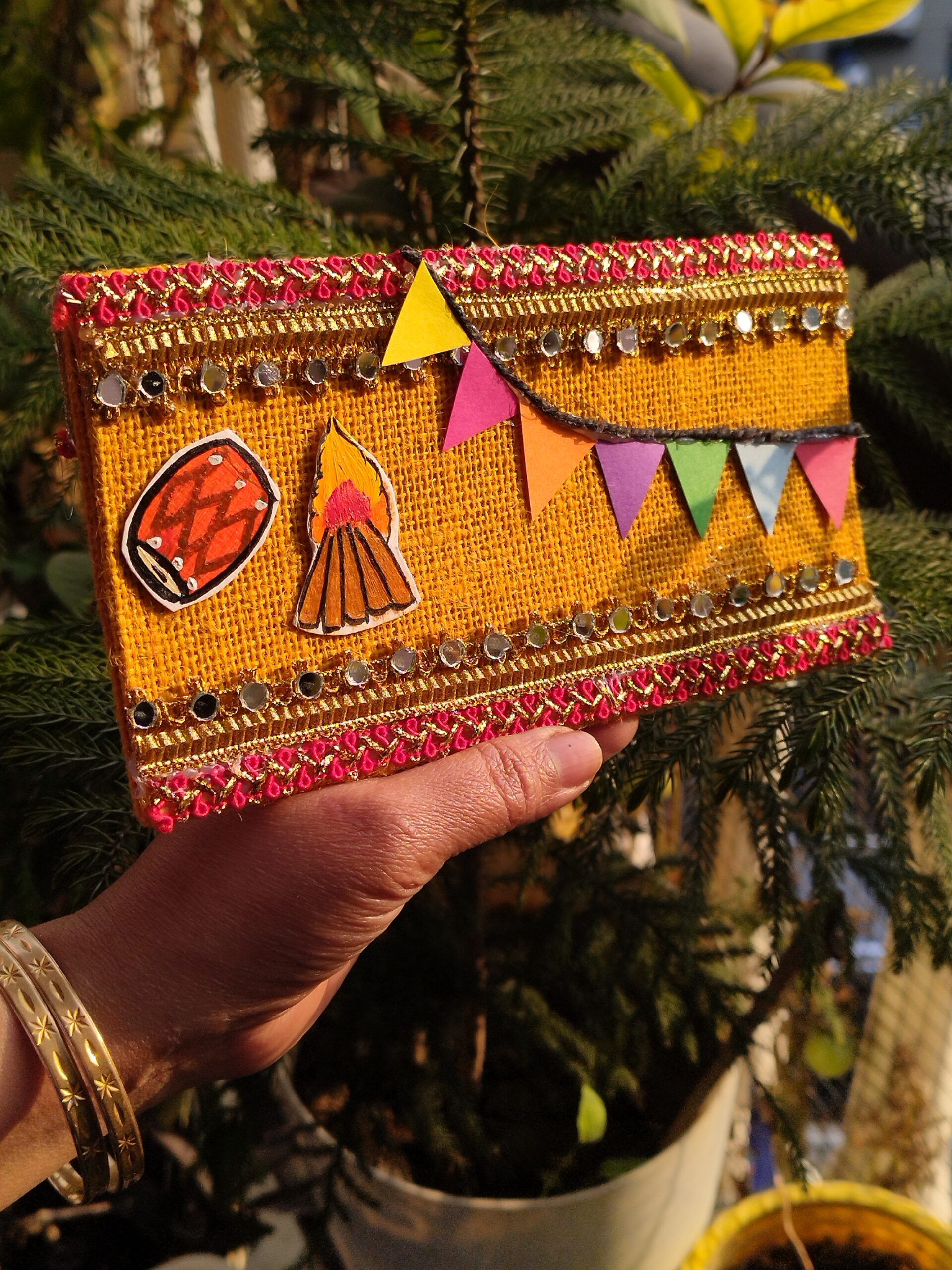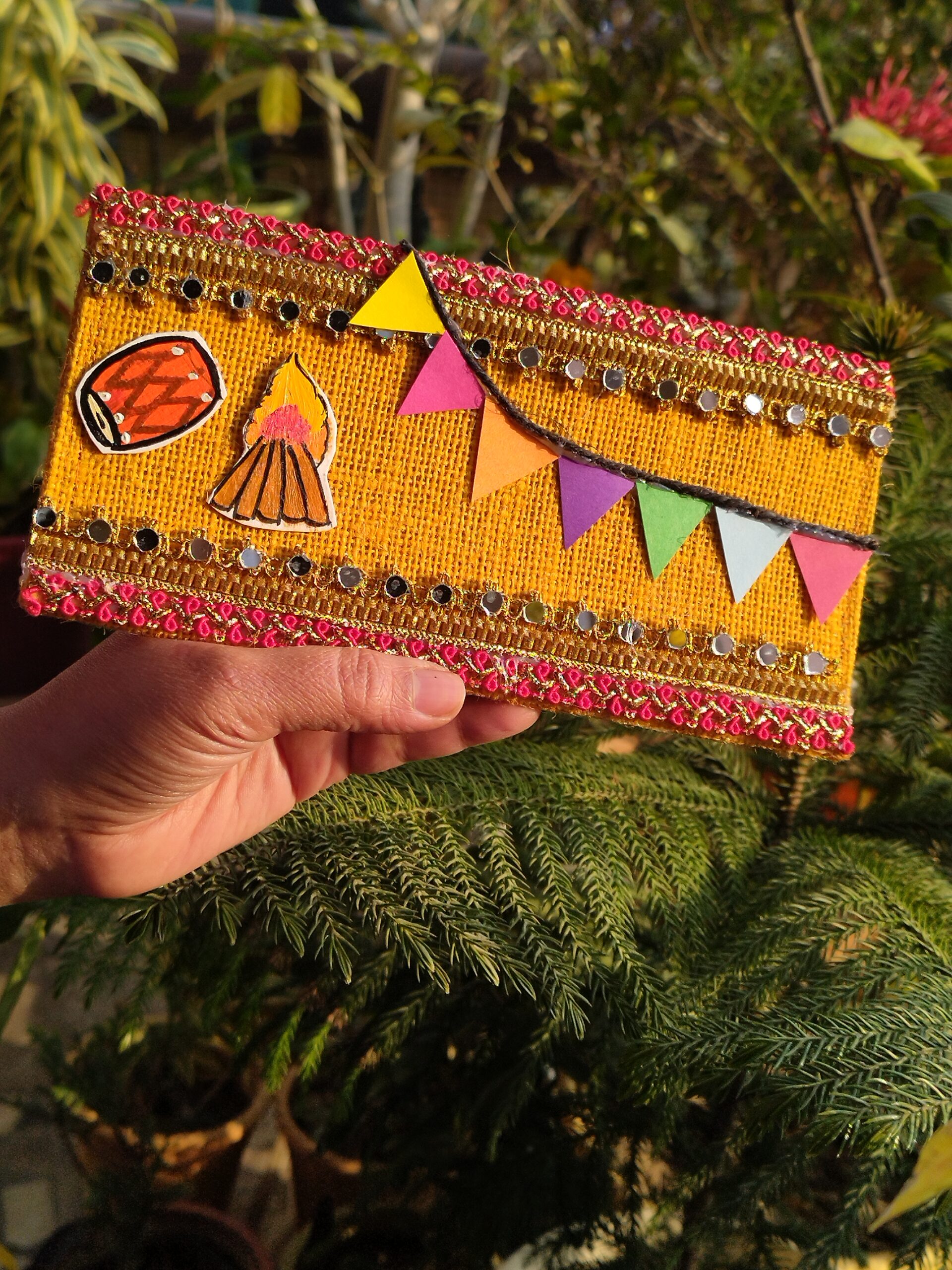 Add a touch of tradition to your gifting and celebrations with this handcrafted fabric envelope pouch. Made with rich textured fabric and adorned with intricate mirror and thread work, it is perfect for weddings, festivals, cash gifting, or special keepsakes—elegant, reusable, and timelessly beautiful. ✨