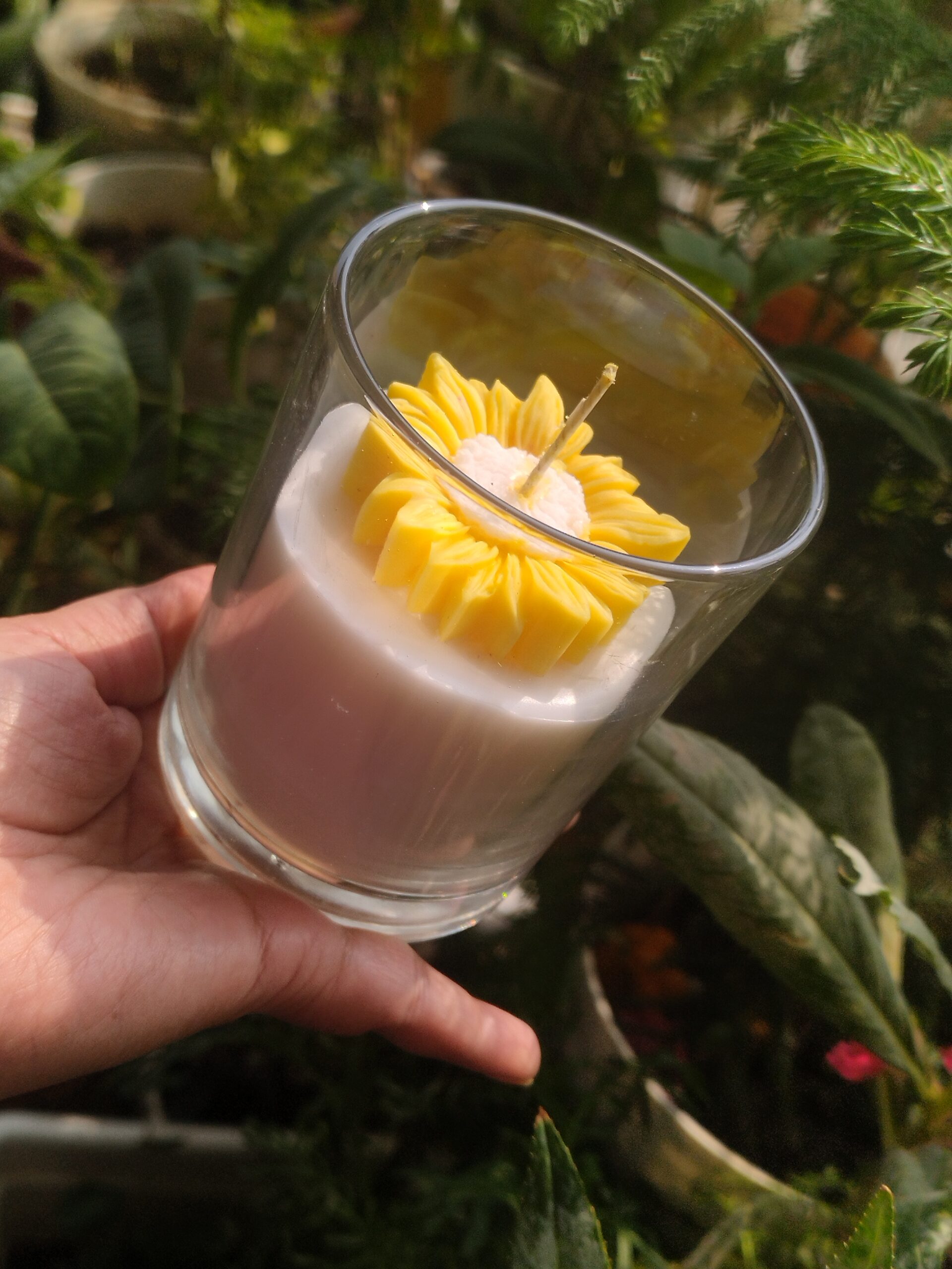 Add a touch of elegance to your space with this handcrafted floral glass candle, featuring a delicate flower design set in a clear jar. Perfect for home décor, gifting, or peaceful evenings, it creates a soothing glow and a fresh, uplifting vibe that brightens both mood and surroundings beautifully.
